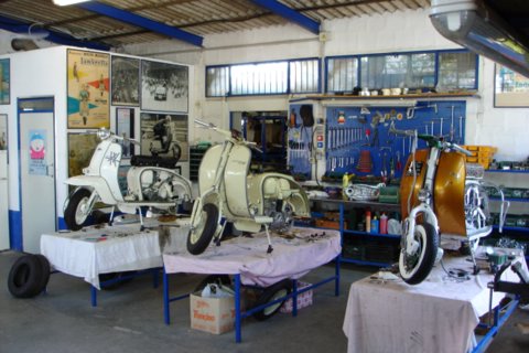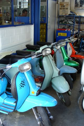 Visited the RLC whilst travelling in Italy in August 2004. Very good quality work going on here...met with Dean, the owner, and he showed me around the workshop and store rooms. They have an amazing amount of parts and scooters, and will be busy with restorations for some time to come. They specialise in hard to find parts and accessories for the scooters.